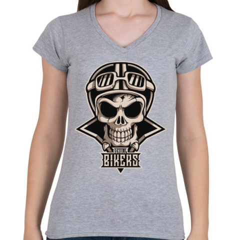 1 kép PRINTFASHION Motoros koponya - Női V-nyakú póló - Sport szürke