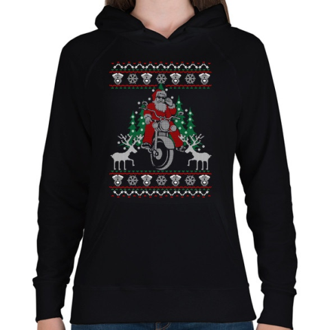 1 kép PRINTFASHION Motoros Mikulás - Női kapucnis pulóver - Fekete