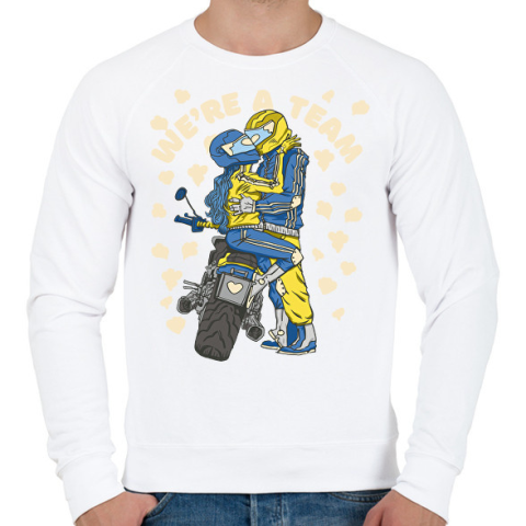 1 kép PRINTFASHION Motoros pár - Férfi pulóver - Fehér