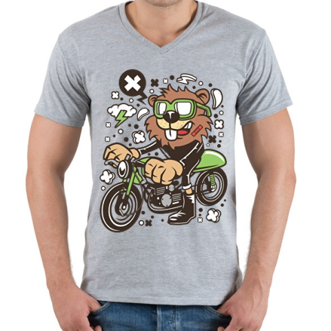 1 kép PRINTFASHION Motoros Rágcsávó - Férfi V-nyakú póló - Sport szürke
