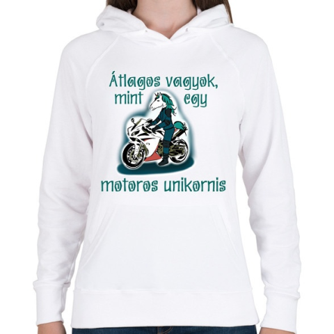 1 kép PRINTFASHION motoros unikornis - Női kapucnis pulóver - Fehér