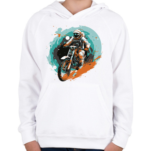 1 kép PRINTFASHION Motoros űrhajós - Gyerek kapucnis pulóver - Fehér