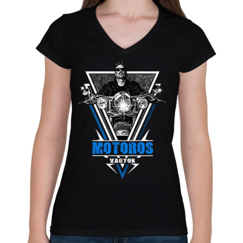 1 kép PRINTFASHION Motoros vagyok 2 - Női V-nyakú póló - Fekete