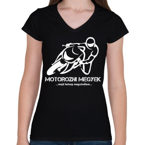 1 kép PRINTFASHION MOTOROZNI MEGYEK - Női V-nyakú póló - Fekete