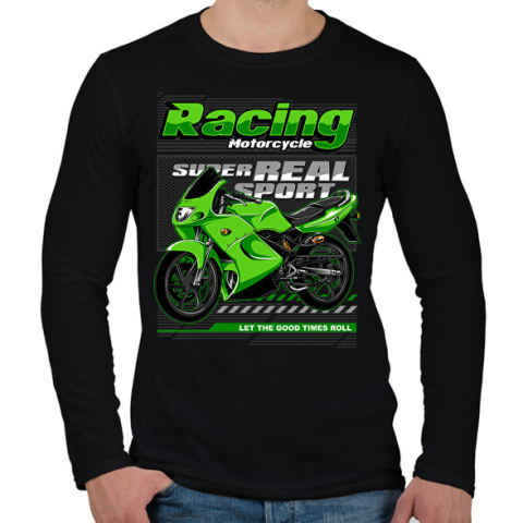 1 kép PRINTFASHION Motorverseny - Férfi hosszú ujjú póló - Fekete