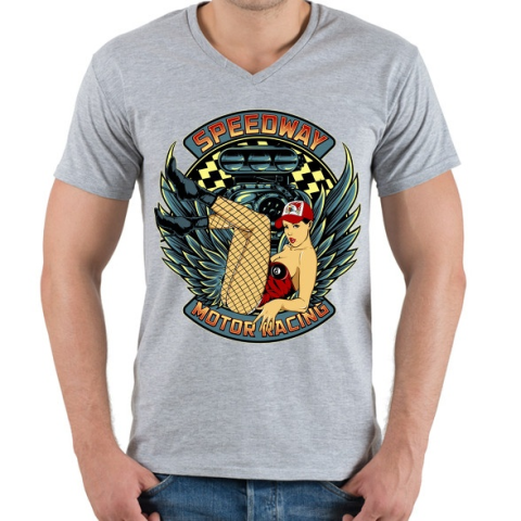 1 kép PRINTFASHION Motorverseny - Férfi V-nyakú póló - Sport szürke