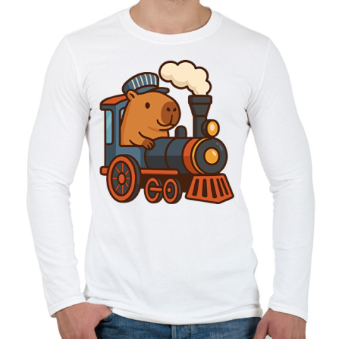1 kép PRINTFASHION Mozdonyvezető kapibara - Férfi hosszú ujjú póló - Fehér