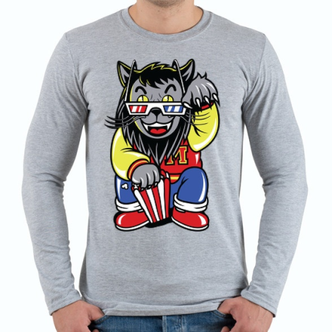 1 kép PRINTFASHION Mozis macska - Férfi hosszú ujjú póló - Sport szürke