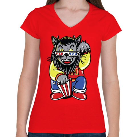 1 kép PRINTFASHION Mozis macska - Női V-nyakú póló - Piros