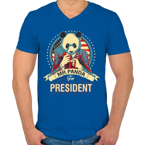 1 kép PRINTFASHION Mr. Panda - Férfi V-nyakú póló - Királykék
