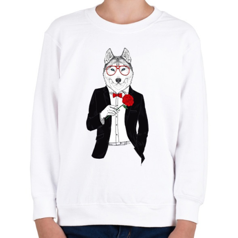 1 kép PRINTFASHION Mr. Wolf - Gyerek pulóver - Fehér