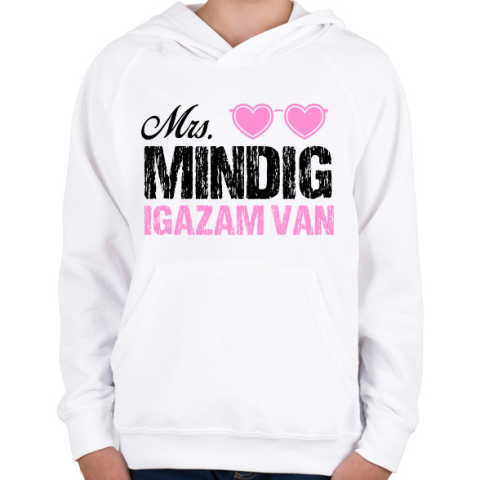 1 kép PRINTFASHION Mrs. Mindig igazam van - Páros póló - Gyerek kapucnis pulóver - Fehér