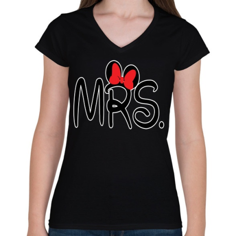 1 kép PRINTFASHION MRS. - Női V-nyakú póló - Fekete