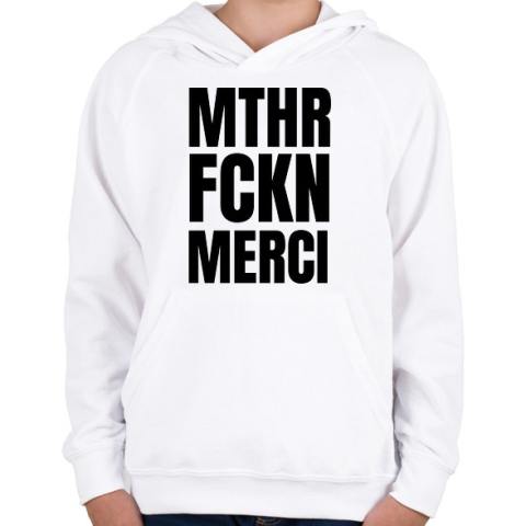 1 kép PRINTFASHION Mthr fckn Merci póló - Gyerek kapucnis pulóver - Fehér