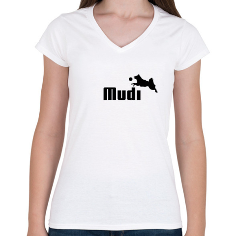 1 kép PRINTFASHION Mudi- kutyás minta - Női V-nyakú póló - Fehér