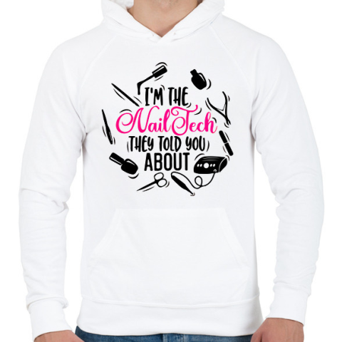 1 kép PRINTFASHION Műkörmös, Nailtech, Műköröm - Férfi kapucnis pulóver - Fehér