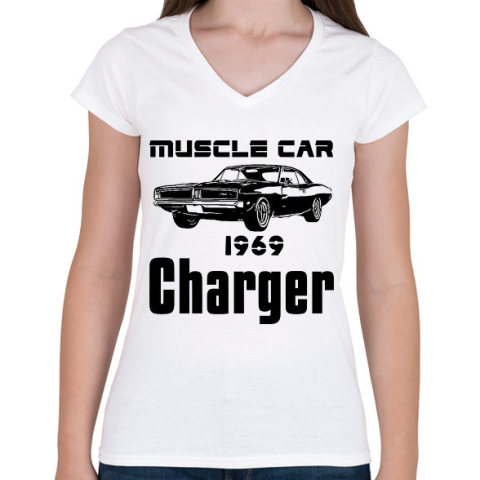 1 kép PRINTFASHION muscle car 1969 charger - Női V-nyakú póló - Fehér
