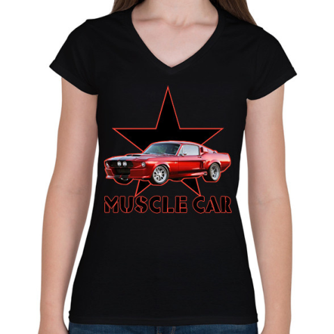 1 kép PRINTFASHION Muscle car - Női V-nyakú póló - Fekete