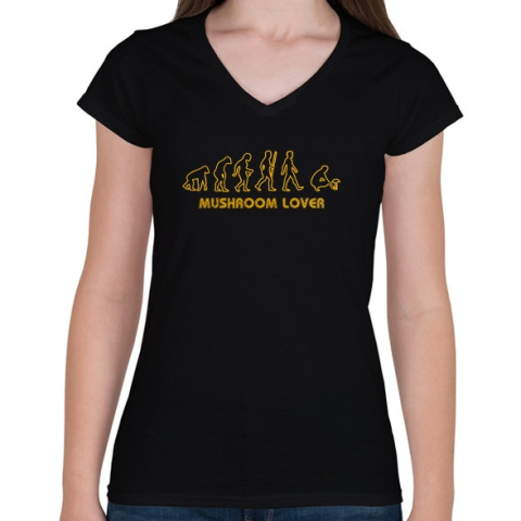 1 kép PRINTFASHION Mushroom lover (sárga felirat) - Női V-nyakú póló - Fekete