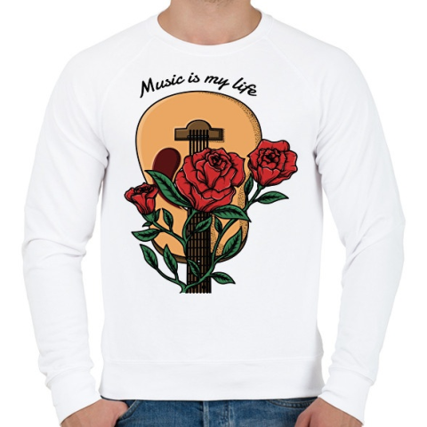 1 kép PRINTFASHION Music is my life - Rózsás gitár - Férfi pulóver - Fehér