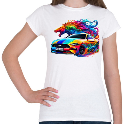 1 kép PRINTFASHION Mustang - Női póló - Fehér