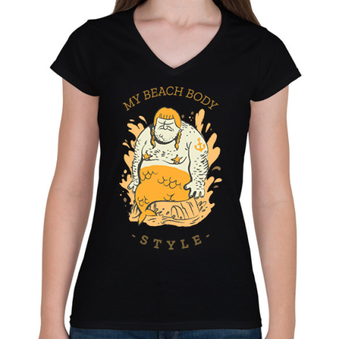 1 kép PRINTFASHION My Beach Body Style - Női V-nyakú póló - Fekete