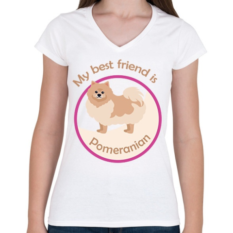 1 kép PRINTFASHION My best friend - Pomeranian - Női V-nyakú póló - Fehér
