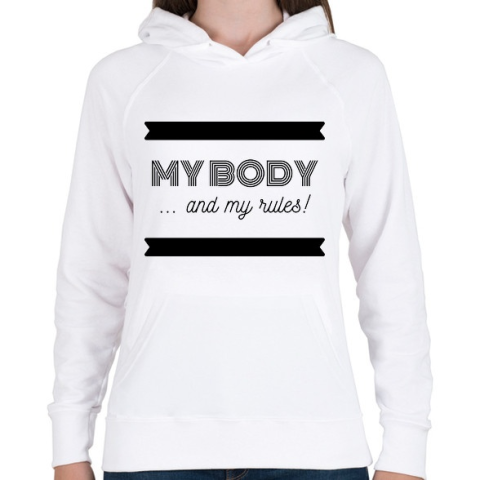 1 kép PRINTFASHION My body and my rules - Női kapucnis pulóver - Fehér