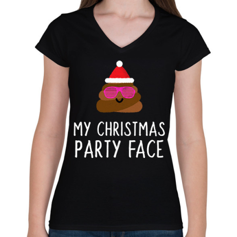 1 kép PRINTFASHION MY CHRISTMAS PARTY FACE - Női V-nyakú póló - Fekete