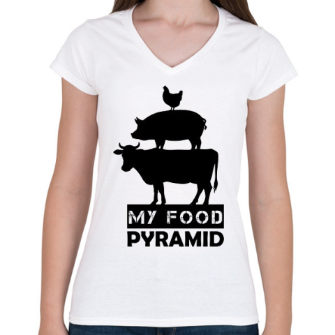 1 kép PRINTFASHION My food pyramid - Női V-nyakú póló - Fehér