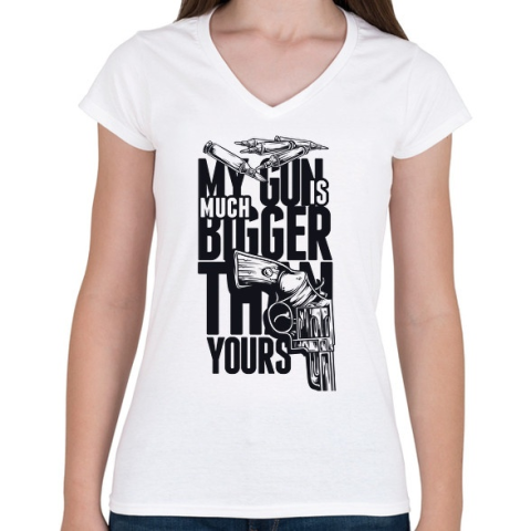 1 kép PRINTFASHION My Gun is BIGGER than yours - Női V-nyakú póló - Fehér