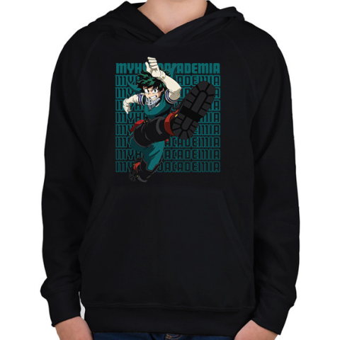 1 kép PRINTFASHION My Hero Academia Izuku Midoriya - Gyerek kapucnis pulóver - Fekete
