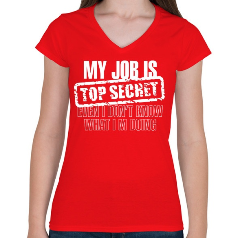 1 kép PRINTFASHION My job. - Női V-nyakú póló - Piros