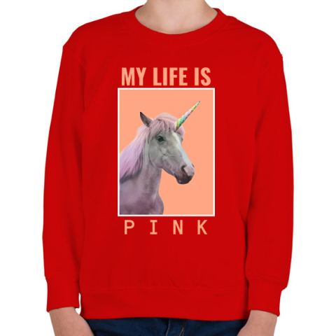1 kép PRINTFASHION MY LIFE IS PINK - Gyerek pulóver - Piros
