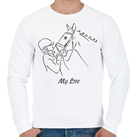 1 kép PRINTFASHION My life - Lovas minta - Férfi pulóver - Fehér