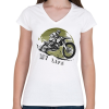 1 kép PRINTFASHION My life - Motoros minta - Női V-nyakú póló - Fehér