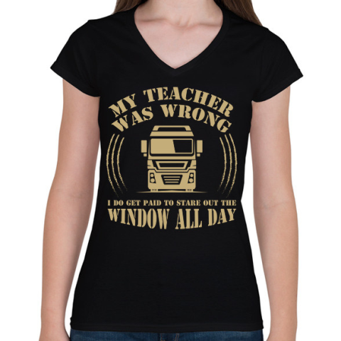 1 kép PRINTFASHION My teacher was wrong - Női V-nyakú póló - Fekete