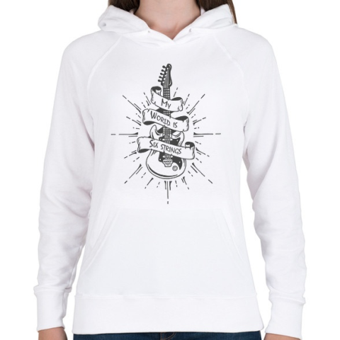 1 kép PRINTFASHION My world is six strings - Női kapucnis pulóver - Fehér
