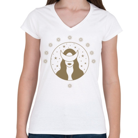 1 kép PRINTFASHION Mystic Girl - Női V-nyakú póló - Fehér