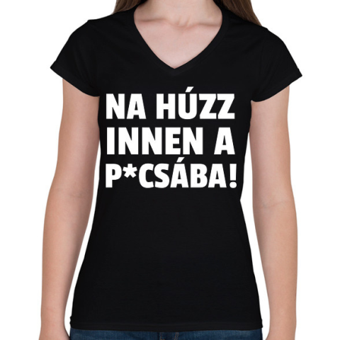 1 kép PRINTFASHION NA HÚZZ INNEN A PICSÁBA - Női V-nyakú póló - Fekete
