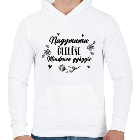 1 kép PRINTFASHION Nagymama ölelése - Fekete - Férfi kapucnis pulóver - Fehér
