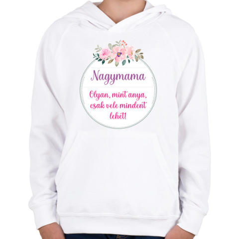 1 kép PRINTFASHION Nagymama olyan mint anya - Gyerek kapucnis pulóver - Fehér