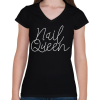 1 kép PRINTFASHION Nail Queen - Műkörmös design - Női V-nyakú póló - Fekete