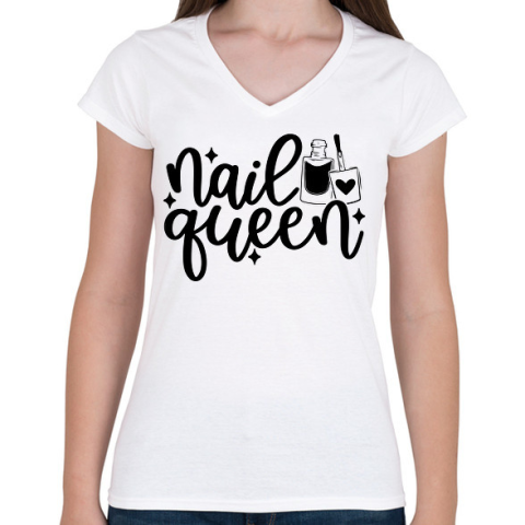 1 kép PRINTFASHION Nail Queen - Női V-nyakú póló - Fehér