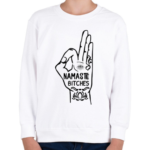 1 kép PRINTFASHION Namaste - Gyerek pulóver - Fehér