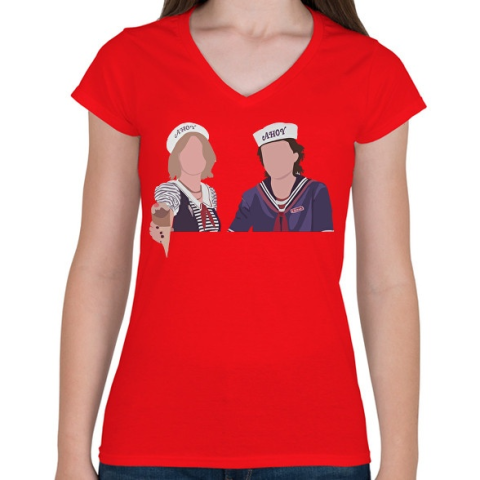 1 kép PRINTFASHION Nancy&Steve ST - Női V-nyakú póló - Piros