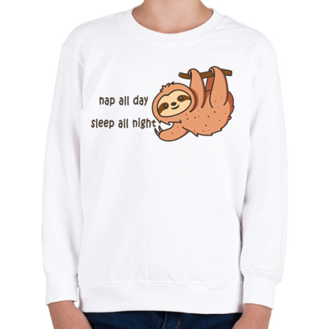 1 kép PRINTFASHION Nap all day Sleep all night lajhár - Gyerek pulóver - Fehér