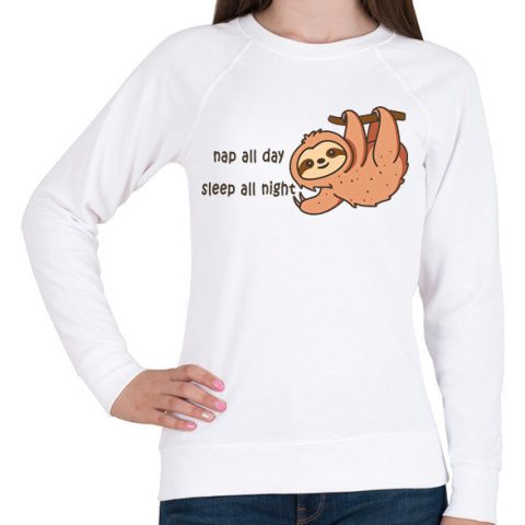 1 kép PRINTFASHION Nap all day Sleep all night lajhár - Női pulóver - Fehér
