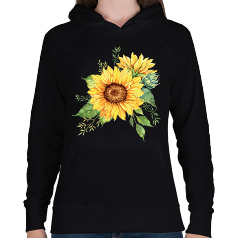 1 kép PRINTFASHION napraforgó - Női kapucnis pulóver - Fekete