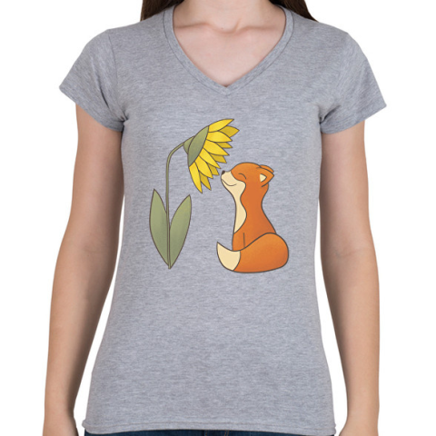1 kép PRINTFASHION Napraforgót szagoló róka - Női V-nyakú póló - Sport szürke